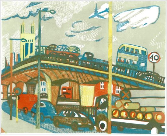 Art Greeting Cards | Cards by Artist (Q - R) | Rupert Shephard | 'Hammersmith Flyover' by Rupert Shephard (Print)